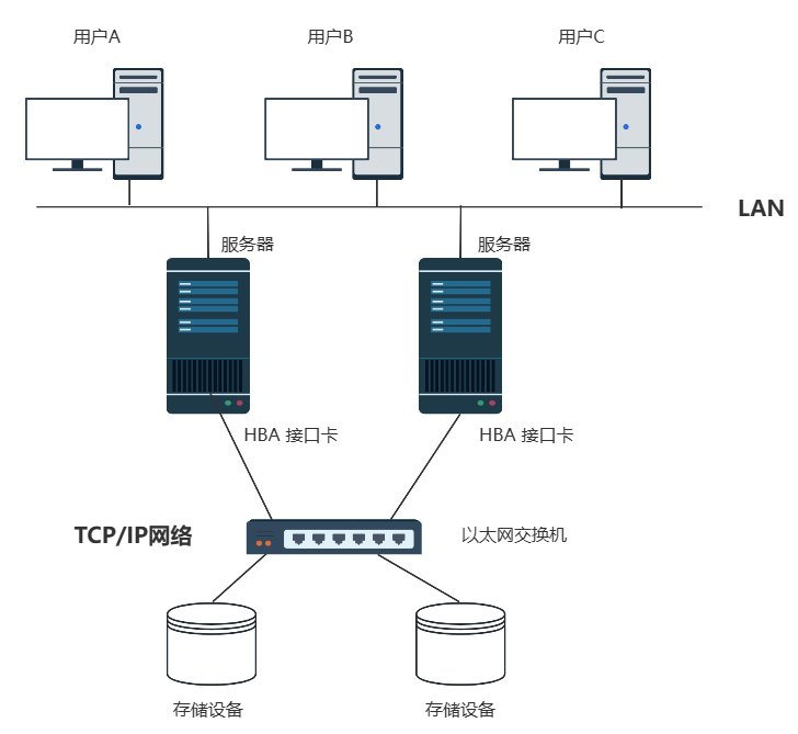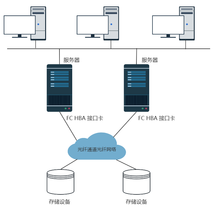 FC-SAN:基於光纖通道技術,性能最優,成本最高